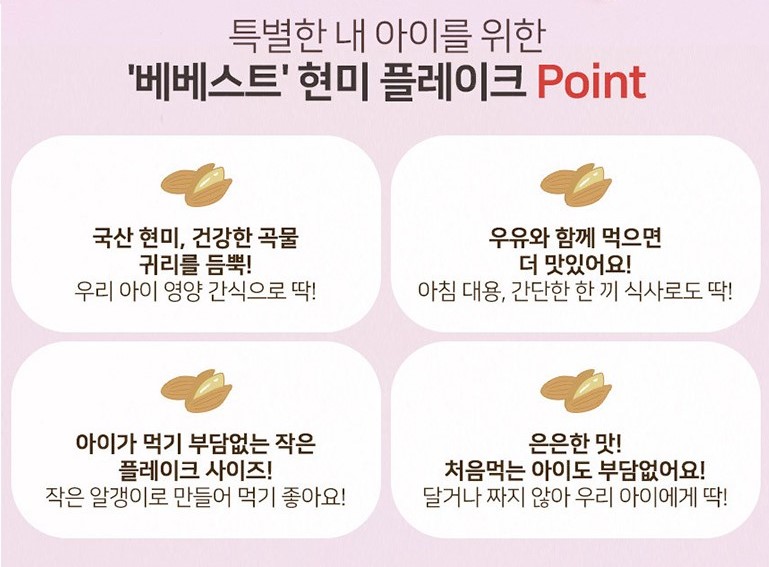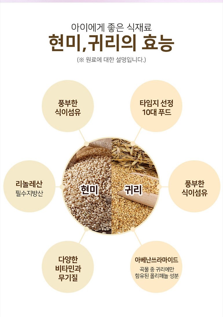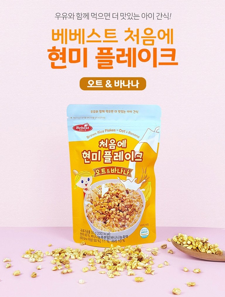 -適合12個月以上 -選用韓國優質糙米及燕麥 -可加入牛奶食用 -健康又美味 -不經油炸處理 -通過HACCP合格認證 #優質糙米及燕麥配搭 #健康早餐