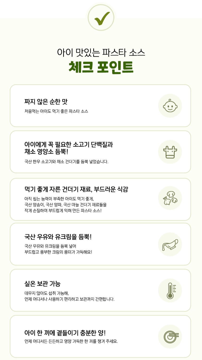 -適合15個月以上 -選用優質的牛肉搭配美味的忌廉白汁 -方便加熱進食 -可以搭配米飯/意大利麵等 -可在室溫下保存 -兒童專用拌飯/麵醬 - 外出攜帶方便 -不含人工香料、無防腐劑 -通過HACCP合格認證 #方便即食 #美味配搭