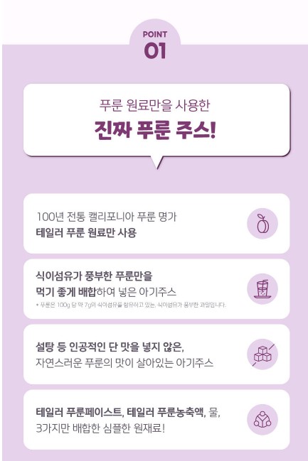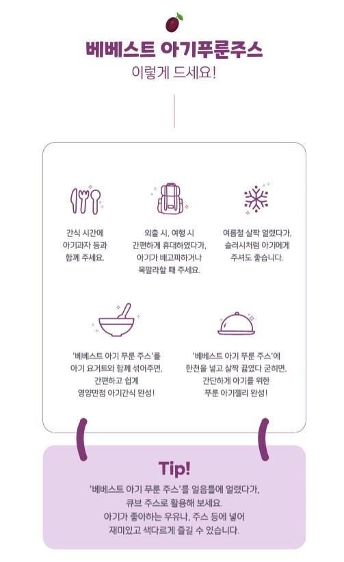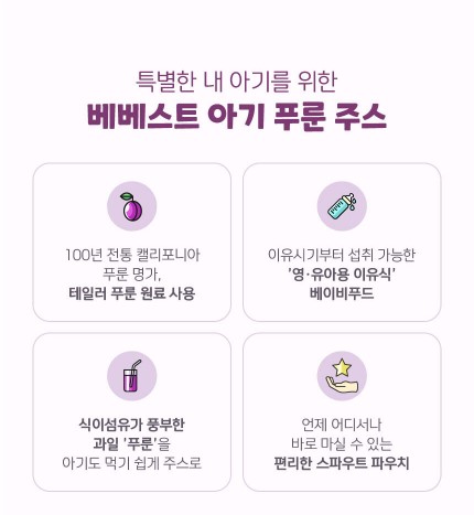 -適合10個月以上 -寶寶最愛的西梅汁 -含有豐富營養,幫助消化 -嬰兒健康果汁 -豐富的水果風味 -可以加入乳酪食用 -方便攜帶 -不含人工甜味劑 -HACCP認證 #豐富營養 #幫助消化