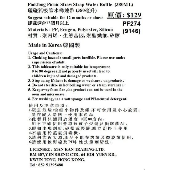 碰碰狐吸管水樽連帶 (380毫升)_PF274