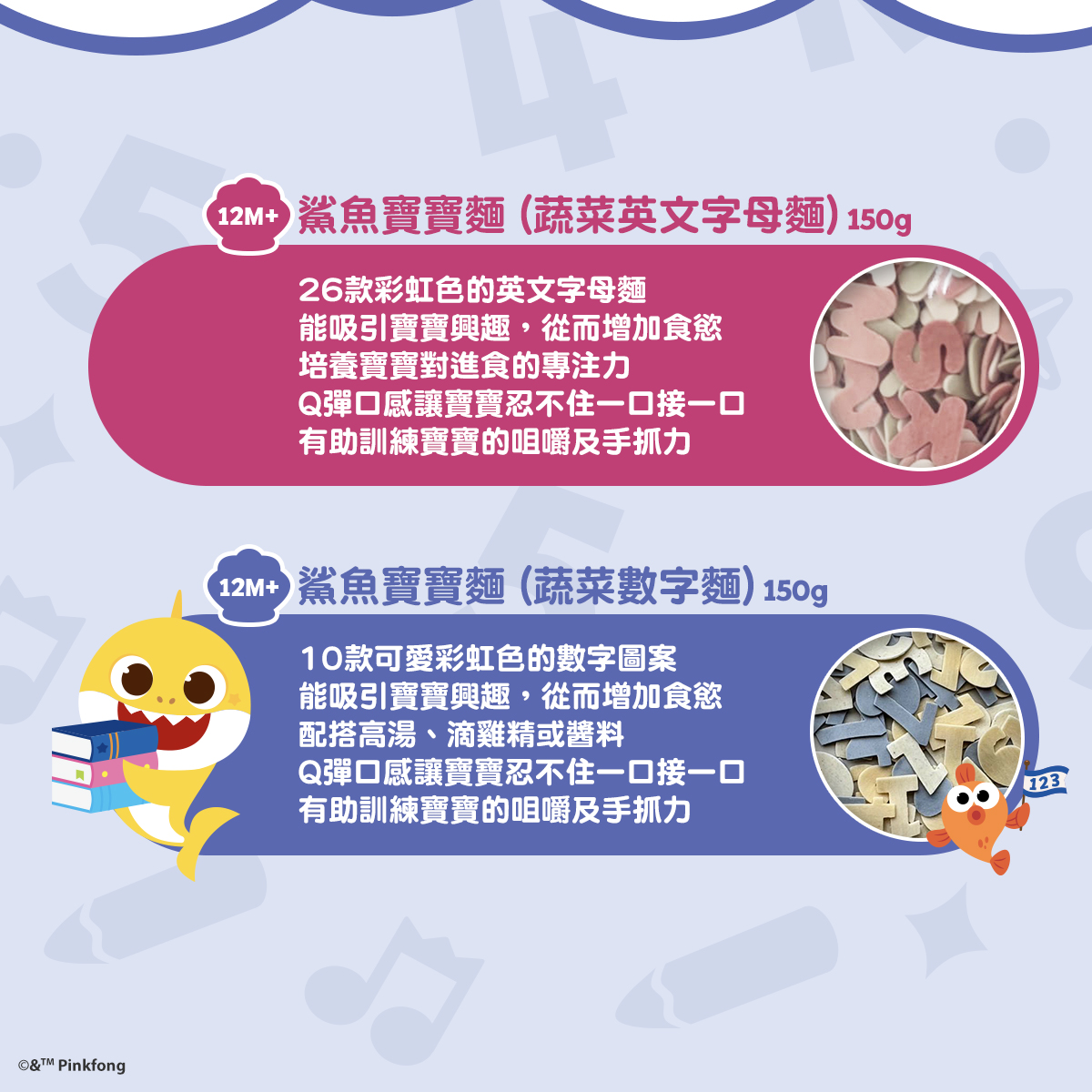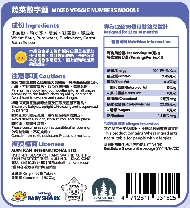 鯊魚寶寶麵(蔬菜數字麵)150g(適合12個月以上)_TW145
