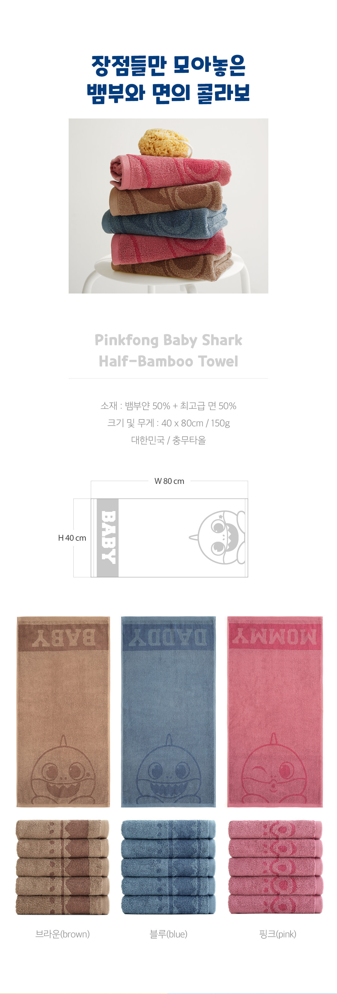 鯊魚寶寶 毛巾 3條 (80x40cm)_PF486