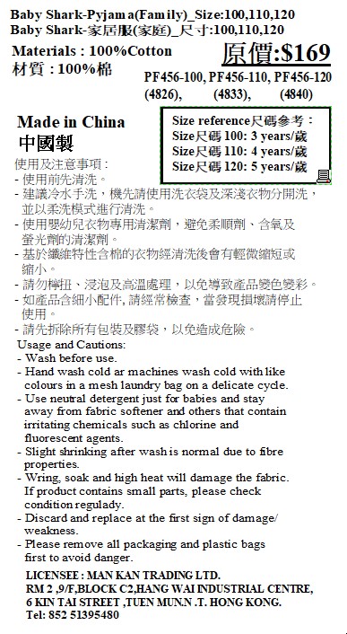 Baby Shark-家居服(家庭)_尺寸:100-120_PF456