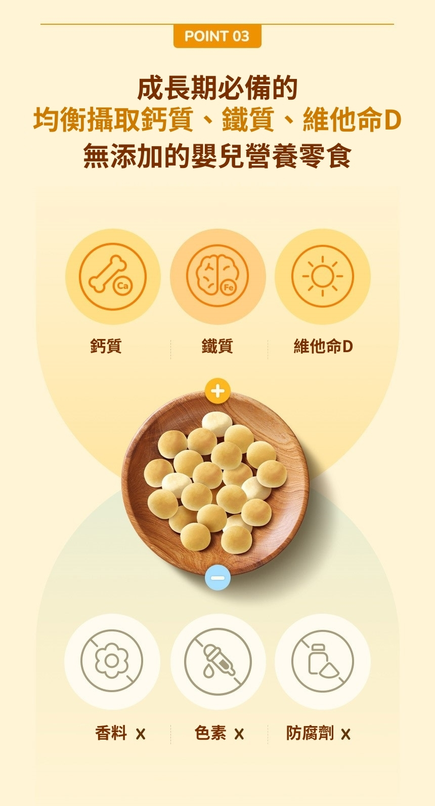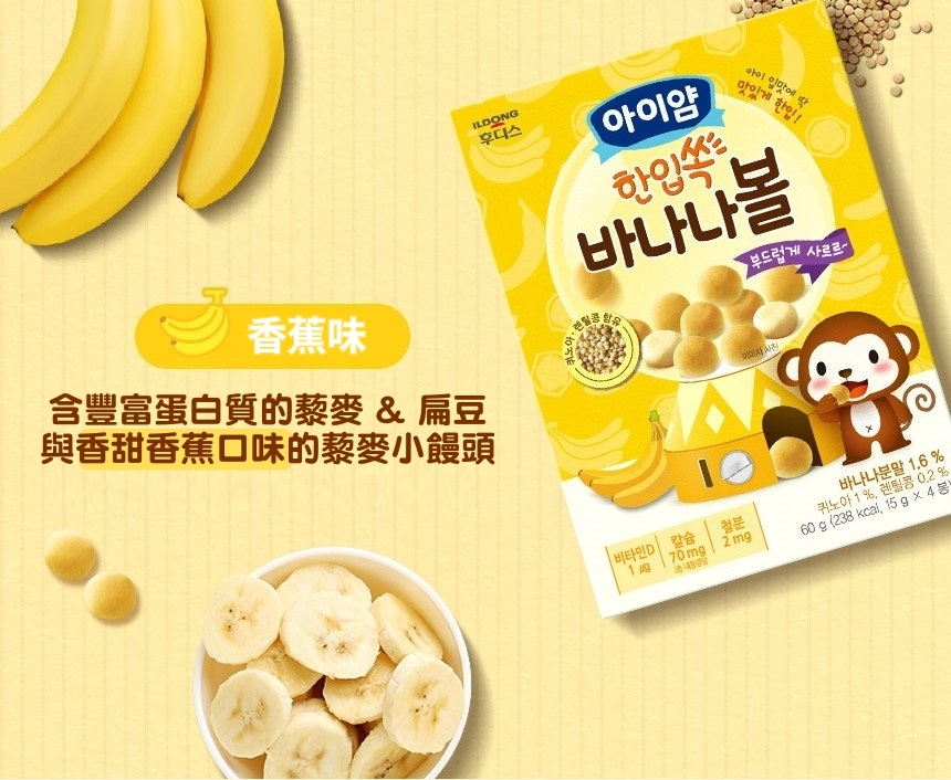 -適合10個月以上 -選用韓國產的超級穀物藜麥及扁豆 -小饅頭放入口即融化 -初嘗試吃餅乾的寶寶,也可以安心食用 -補充寶寶需要的營養 -不經油炸,不含人工色素香料,防腐劑及膨漲劑 -獨立包裝方便攜帶.