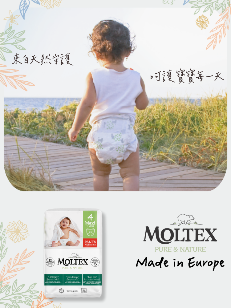 給寶寶最天然的守護 Moltex 歐洲頂級純天然透氣學習褲專為嬰幼兒脆弱肌膚設計,讓每一次貼合都舒適自在。 -3款不同尺寸,滿足各階段寶寶需求 -高透氣不織布,保持乾爽不悶熱 ,減少尿布疹風險 -360° 舒適彈性腰圍,自由伸縮,方便活動,更容易更換 -專利SecondDry技術,獨特瞬吸系統,快速鎖水 -持續12小時吸濕,夜晚安心不打擾 -100% 無添加香料 & 化學漂白 -環保材質,守護地球同時守護寶寶 -歐洲製造,歐洲品質保證 -通過國際過敏認證及歐盟皮膚權威機構 5星敏感測試認証 給寶寶最安心的呵護,從選擇開始! 選擇 MOLTEX,天然安心,讓寶寶自在成長,爸媽更放心!