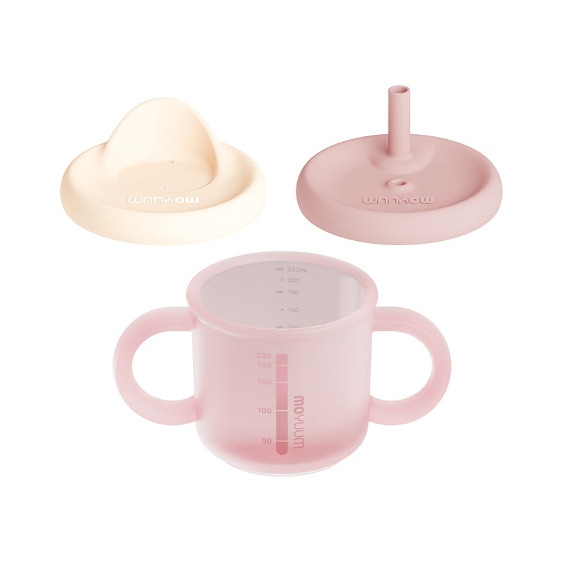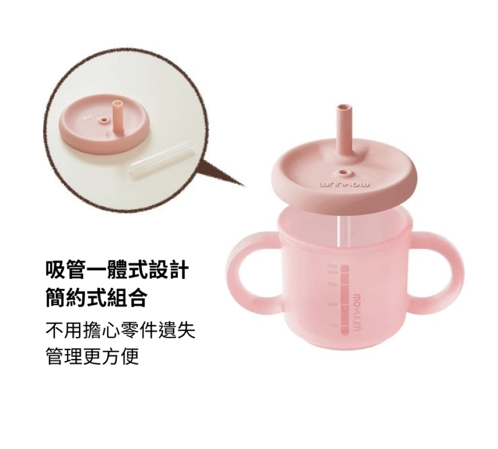 Moyuum 矽膠學習雙柄杯200ml(附鴨咀及吸管配件)(粉紅)_MY245