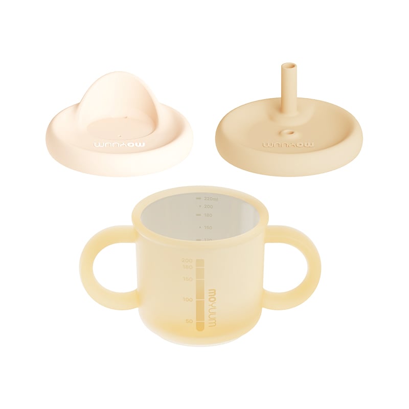 Moyuum 矽膠學習雙柄杯200ml(附鴨咀及吸管配件)(黃色)_MY244