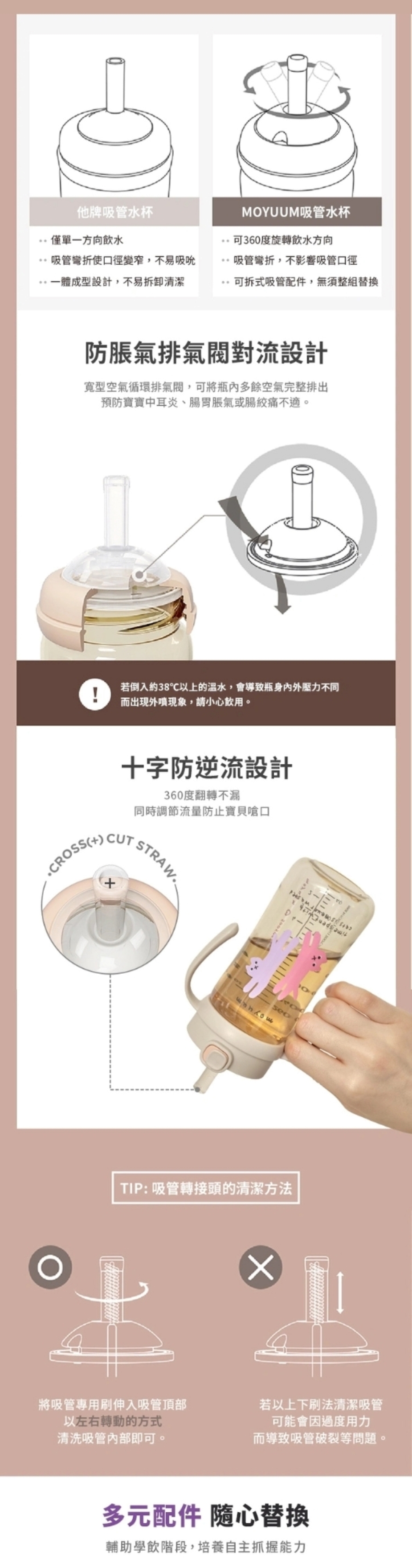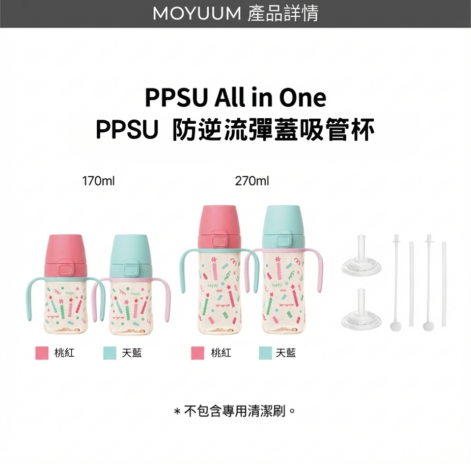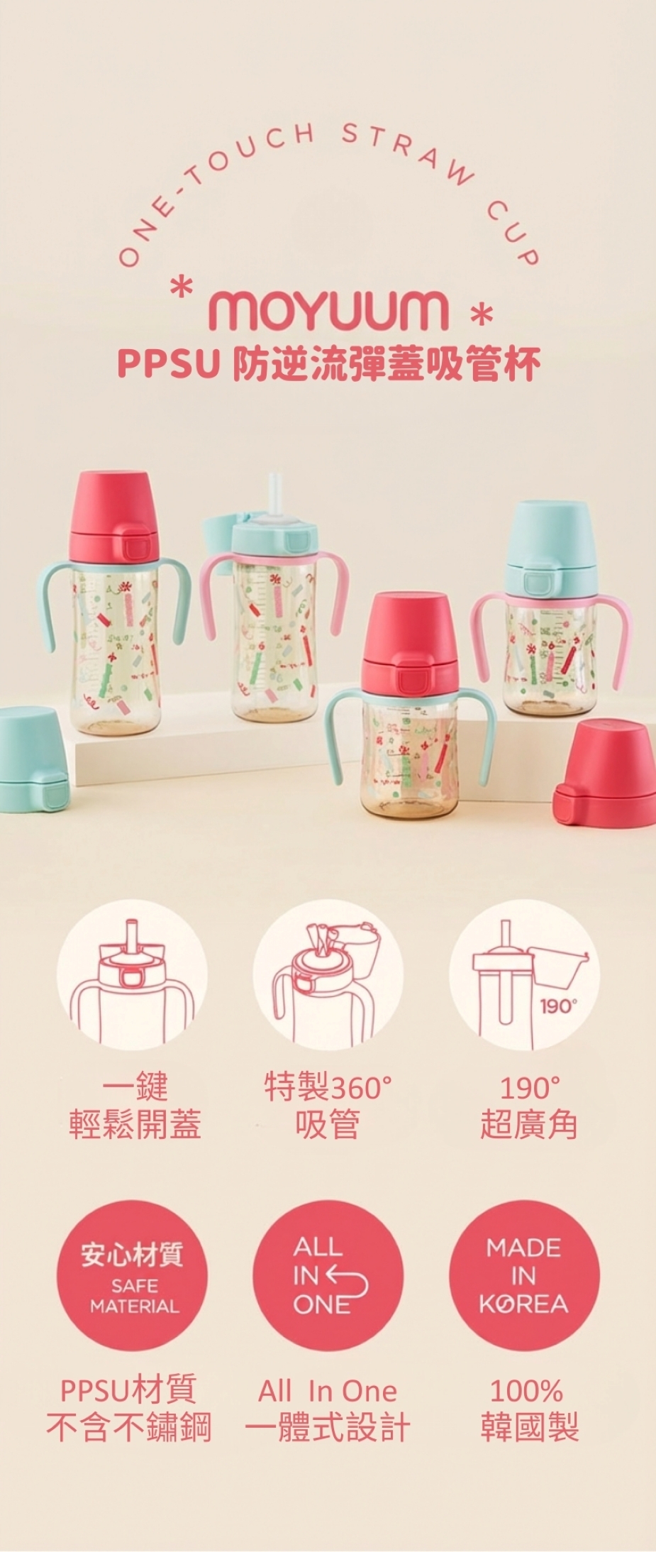 Moyuum PPSU 防逆流彈蓋吸管杯270ml (桃紅)_MY249