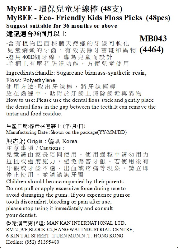 -含有植物巴西棕櫚天然蠟的牙線可軟化 兒童嬌嫩的牙齒,有效去除牙菌斑和異物 -選用400D細牙線,專為兒童而設計 -手柄上有壓花防滑功能,方便兒童使用