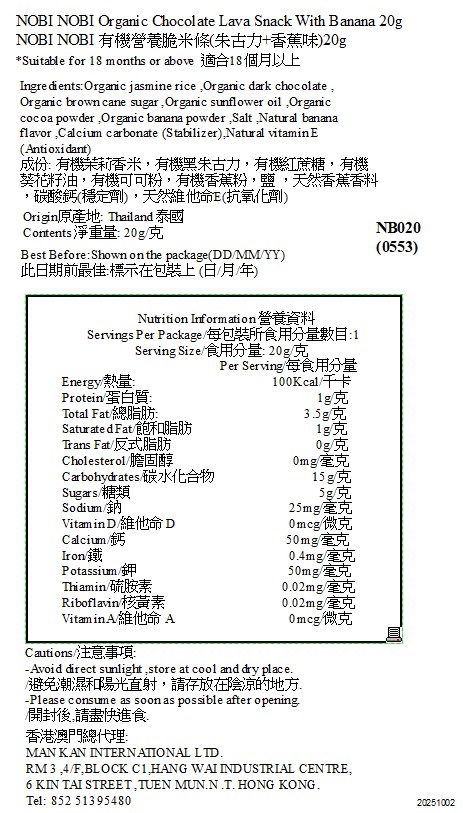 NOBI NOBI 有機營養脆米條(朱古力+香蕉味)20g(適合18個月以上)#不含麩質_NB020