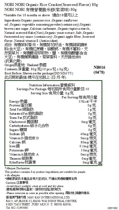 NOBI NOBI 有機營養脆米餅(紫菜味) 80g(適合18個月以上)#不含麩質_NB016