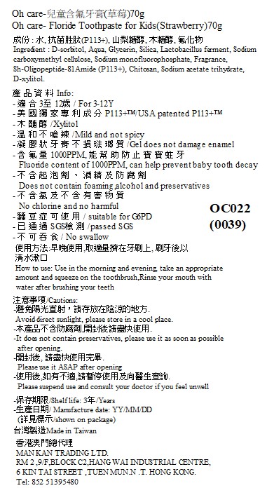 oh care-兒童含氟牙膏(草莓)70g_OC022