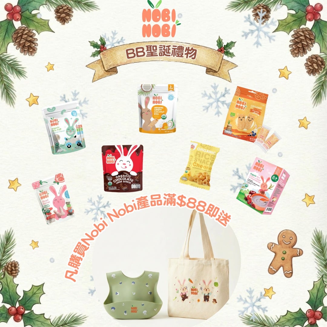 即日起至 1月4日,凡購買折實滿 $168,即可免費獲贈NOBI NOBI 有機米圈(芝士味) 40g 及 免運費