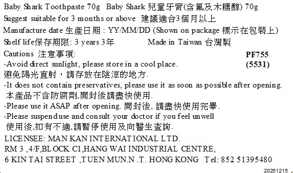 Baby Shark 兒童牙膏(含氟及木糖醇) 70g_PF755