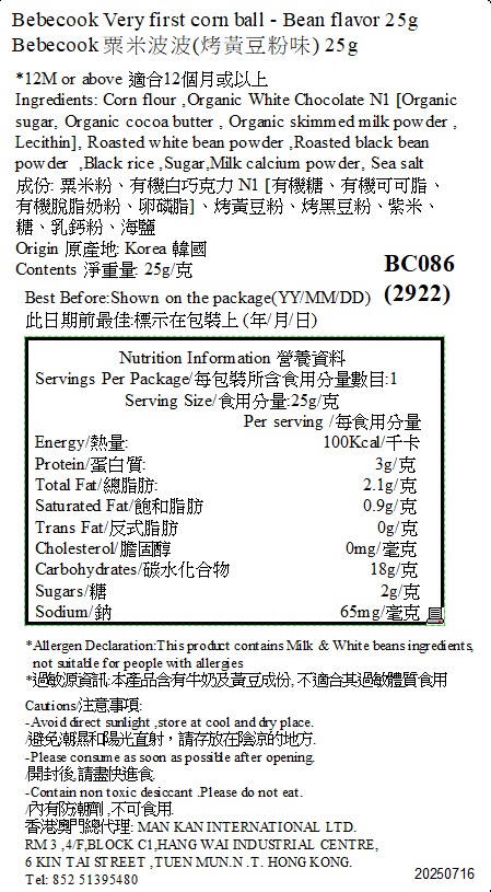 Bebecook粟米波波(烤黃豆粉味) 25g(適合12個月以上)_BC086