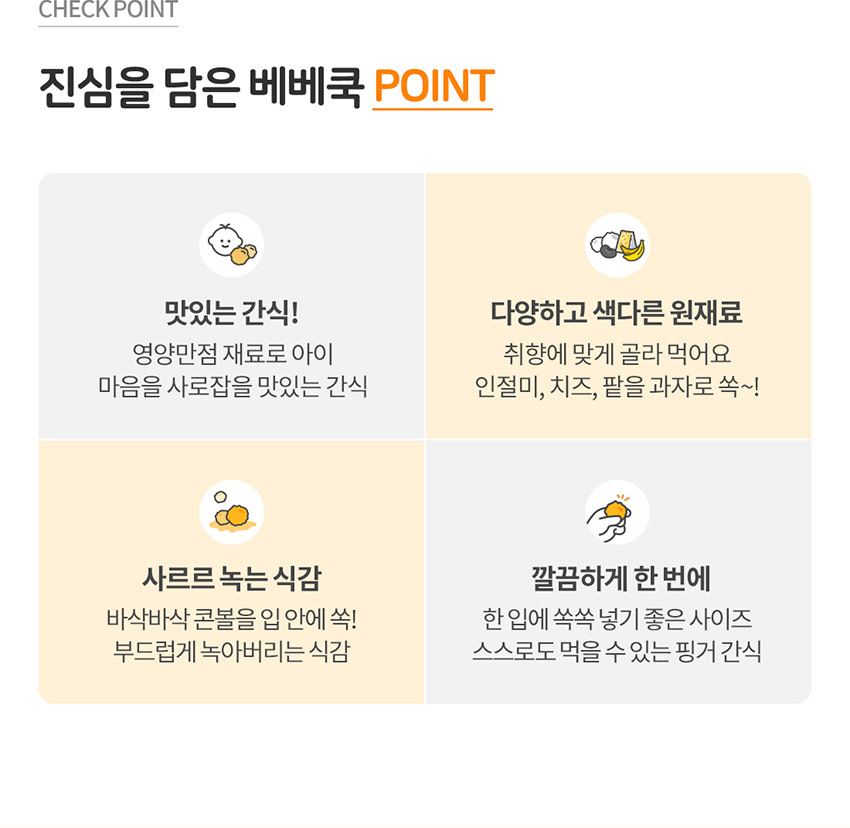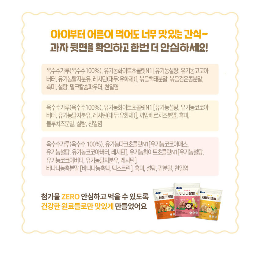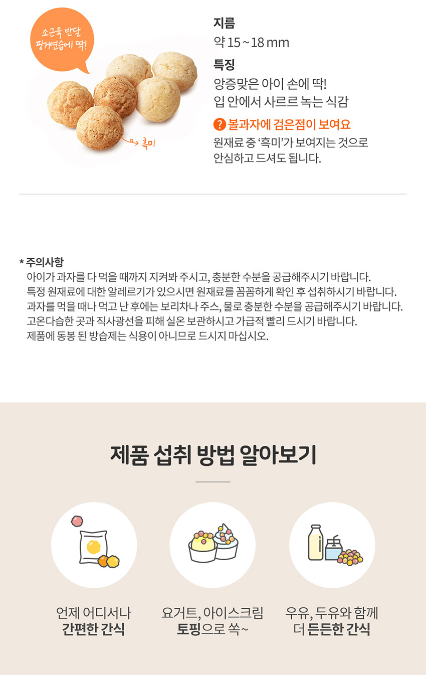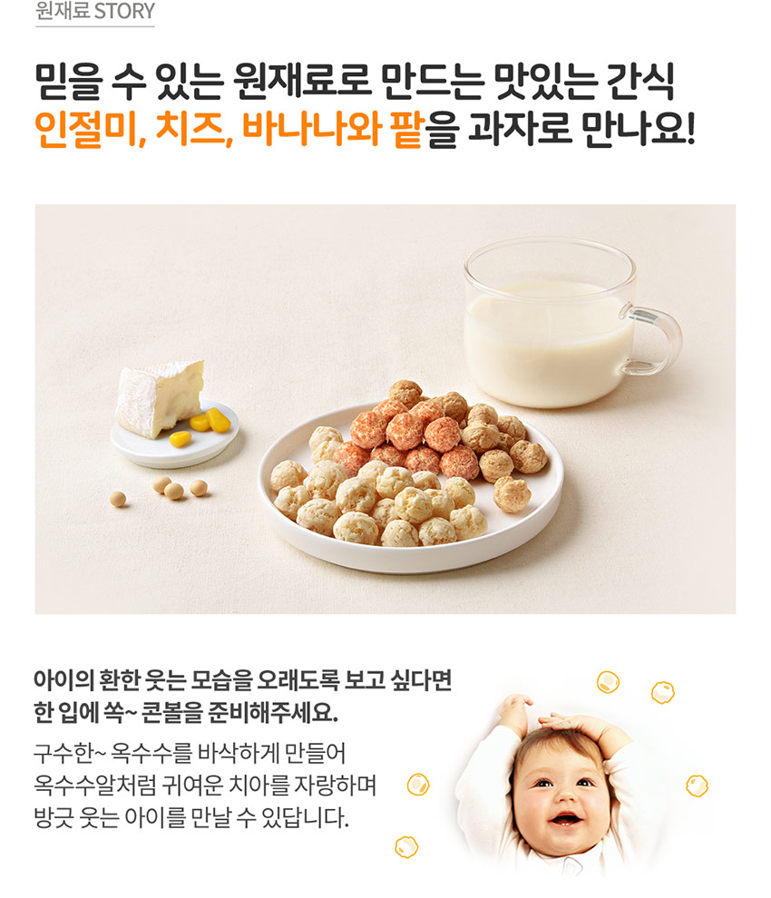 -適合12個月以上 -使用非轉基因粟米原料NON-GMO -香脆又入口即化 -能鍛練寶寶抓握力 -拉鍊袋口包裝,開啟後方便儲存 -每粒波波約15-18mm,方面寶寶食用 -不添加色劑 -不經油炸, 利用物理壓力膨化