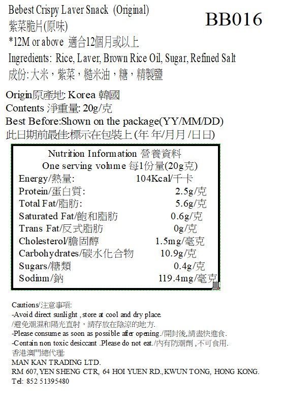 Bebest 紫菜脆片(原味)20g (適合12個月以上)_BB016