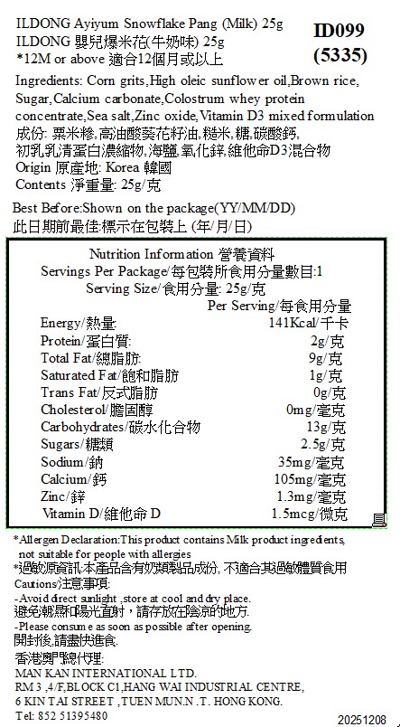 ILDONG 嬰兒爆米花(牛奶味) 25g(適合12個月以上)_ID099