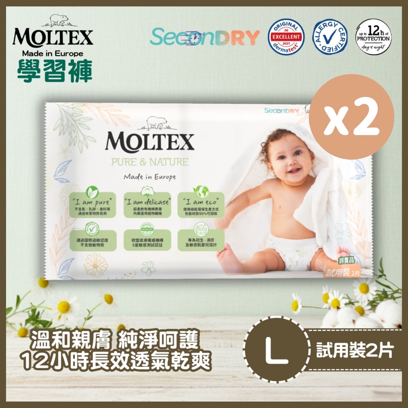 Moltex 歐洲頂級純天然透氣學習褲試用裝(L-2片) x2件_MT008G2