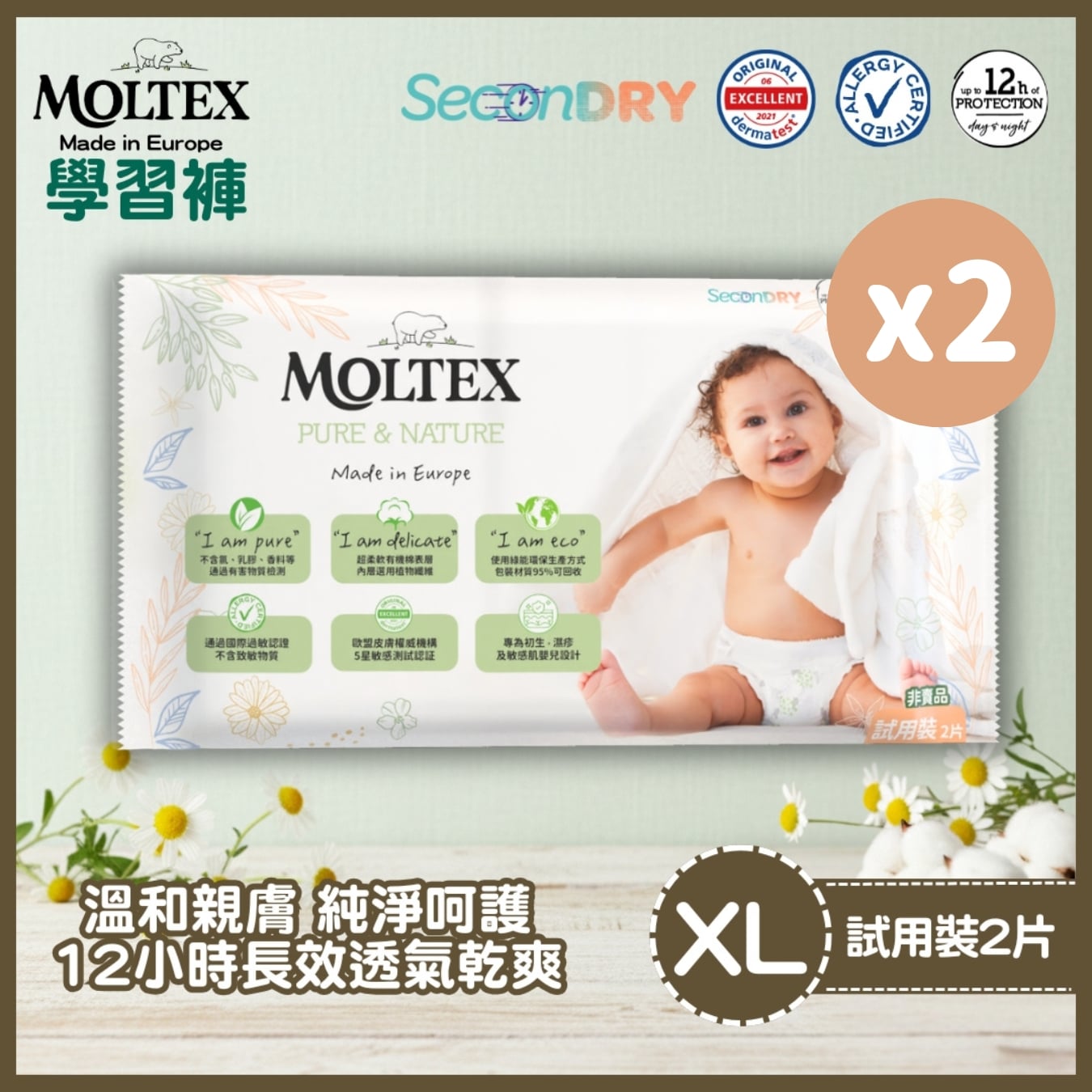 Moltex 歐洲頂級純天然透氣學習褲試用裝(XL-2片) x2件_MT009G2