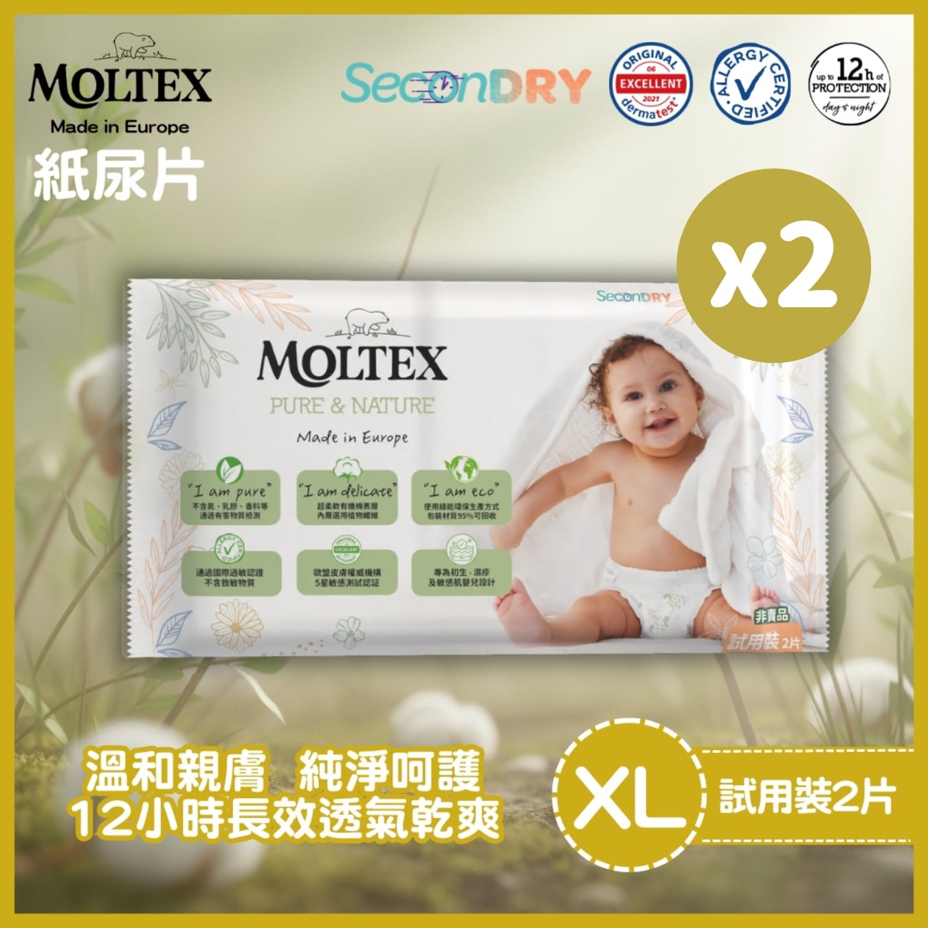 Moltex 歐洲頂級純天然透氣紙尿片試用裝(XL-2片) x2件_MT006G2