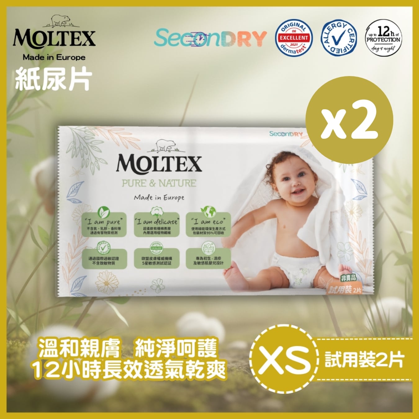 Moltex 歐洲頂級純天然透氣紙尿片試用裝(XS-2片) x2件_MT002G2